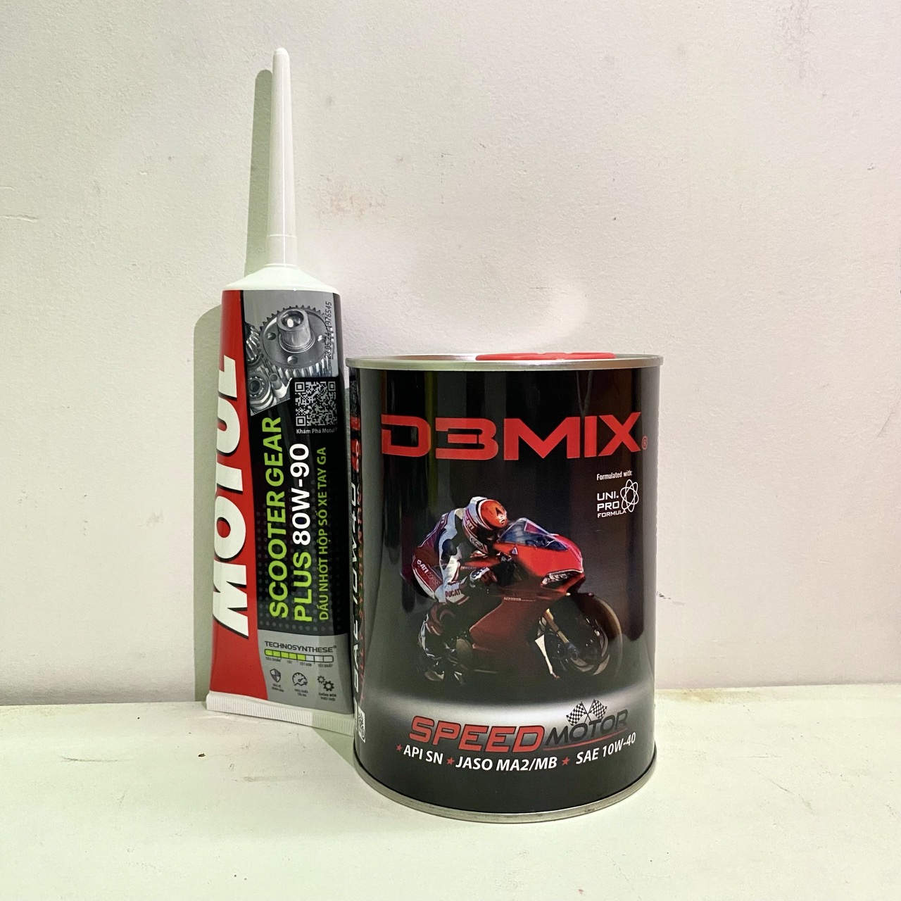 1/ Nhớt Xe Máy Full Tổng Hợp DBMIX 10W40 Cho Xe Số Và Xe Tay Ga 0.8L/1L, xe số và xe tay ga đều dùng được.