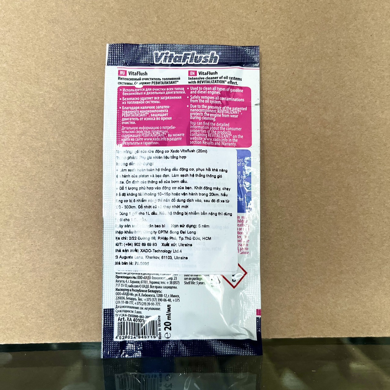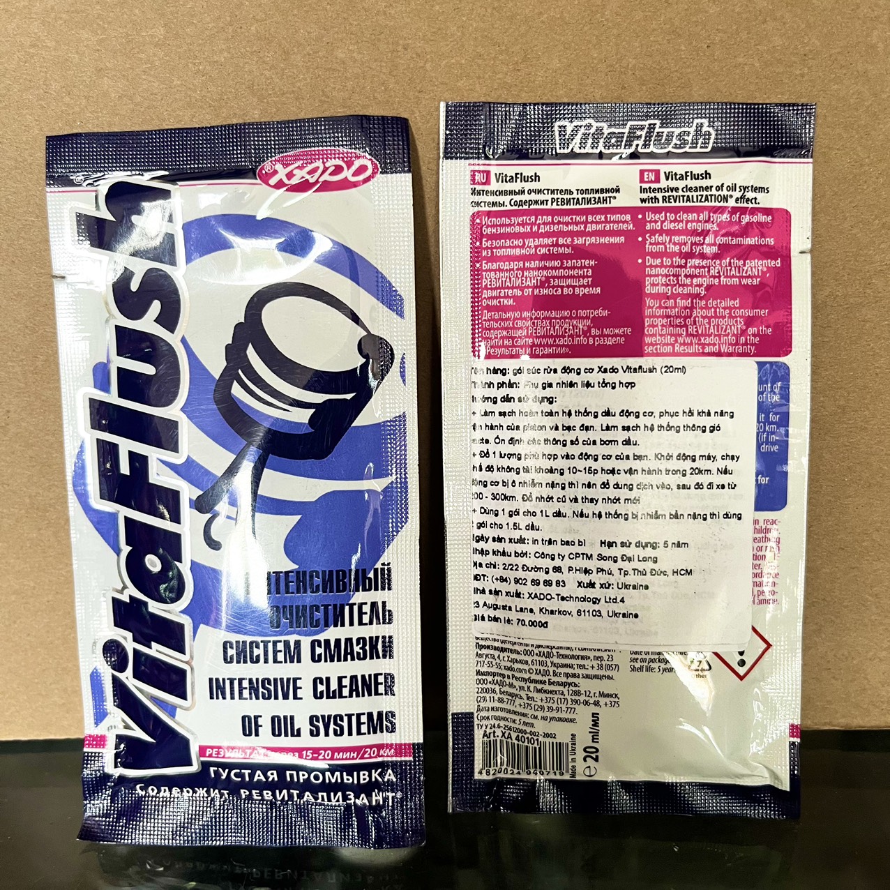 Súc Động Cơ Xado Vitaflush Gói 20ml, Làm Sạch Mặt Động Cơ, Loại Bỏ Cặn Carbon, Chống Mài Mòn Động Cơ. Dung dịch súc động cơ, làm sạch dầu nhớt cũ, cặn bẩn, đồng thời, khôi phục lại 70% các chi tiết mài mòn trong động cơ nhờ vào thành phần hồi phục Revitalizant độc quyền từ tập đoàn Xado.